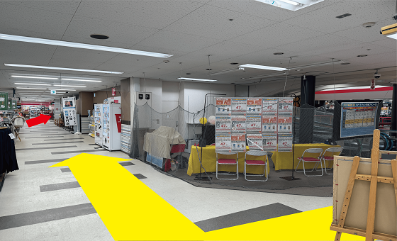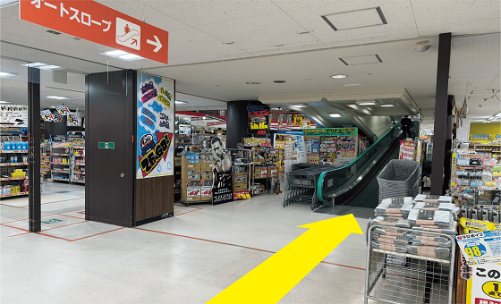 目の前にダイソーが見える通路をそのまま進んで貰うと突き当たり右側に当店があります。スマートクリア 旭川店と併設しております。お気軽にお入りください。