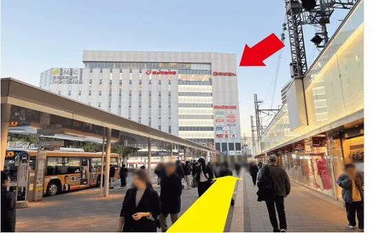 そのまま外へ出て、正面にあるビックカメラさんに向かって進みます。