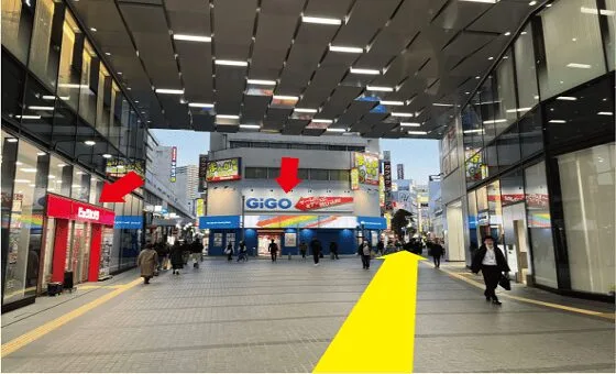 左手にビックカメラさん、正面にGIGOさんが見えたら右斜め前に進みます。