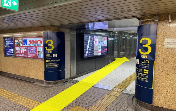 3番出口のエスカレーターを出て右に曲がります。