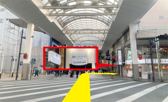 市電 通町筋駅で下車して、下通りアーケード方面へ渡ります。