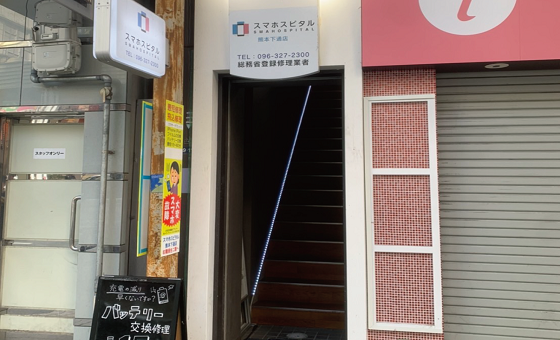 アメモバ買取 熊本店の入口です。スマホスピタル熊本下通店の店内に併設しております。