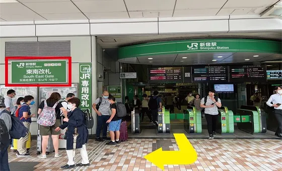 JR新宿駅 東南改札を出たら、右に曲がります。